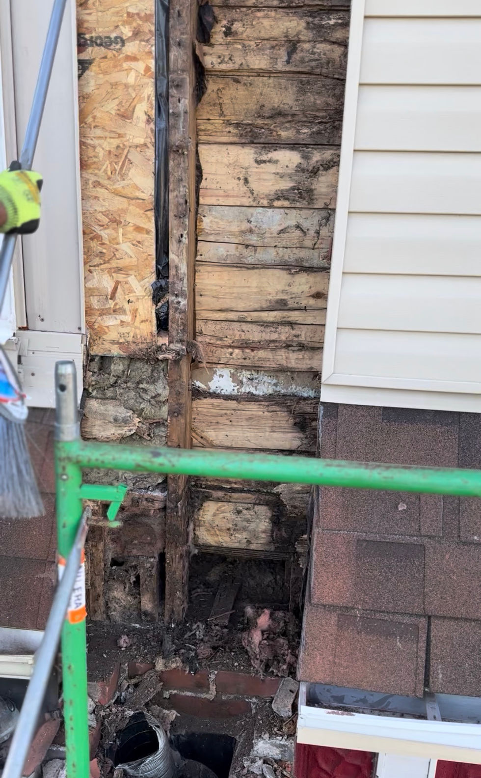 This project involved the demolition of a damaged chimney that was causing water leakage and structural deterioration. Our team removed all the rotten framing, reinforced the structure, and sealed every detail to prevent future leaks. In addition, we provided painting services and repaired the surrounding concrete wall, ensuring a clean, solid, and lasting finish.